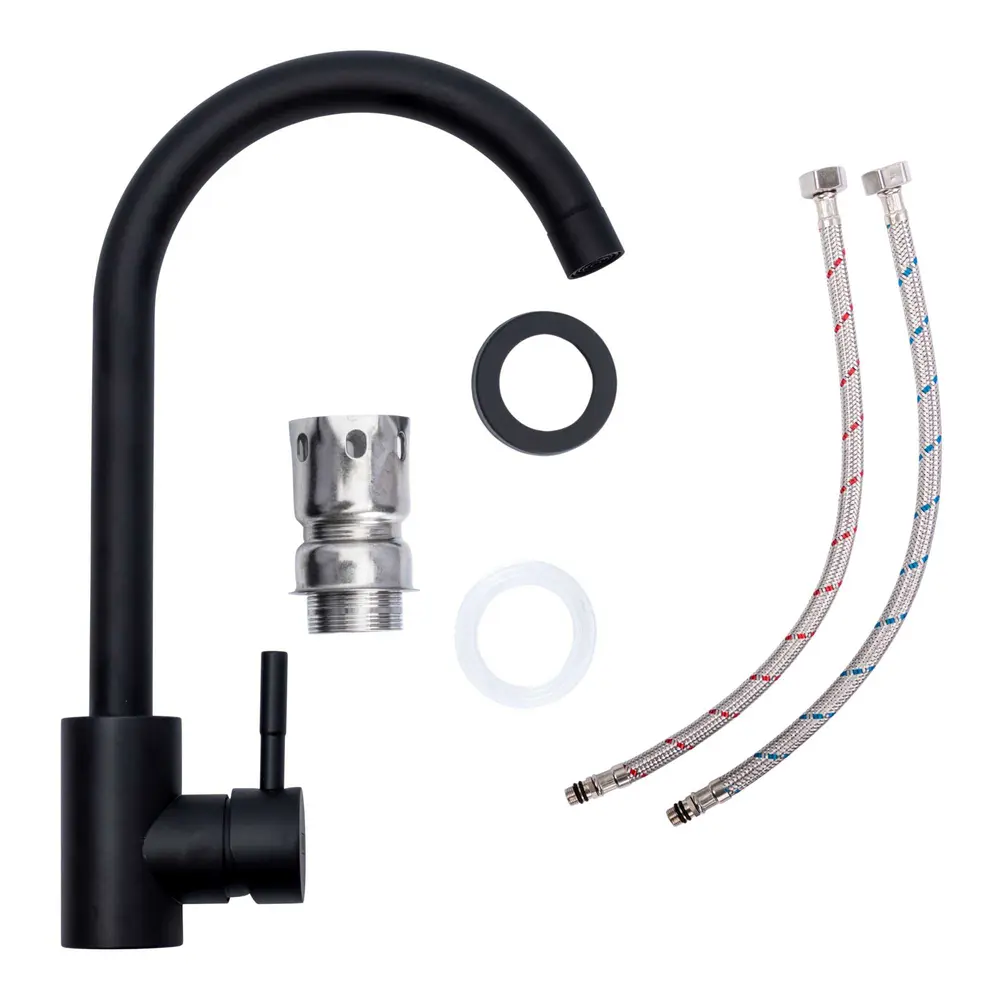 Гнучкий кухонний змішувач Platinum BG76 добре поєднується з різними видами мийок темного кольору. Він має округлий вилив, що полегшує миття посуду та ідеально підходить для повсякденного використання.