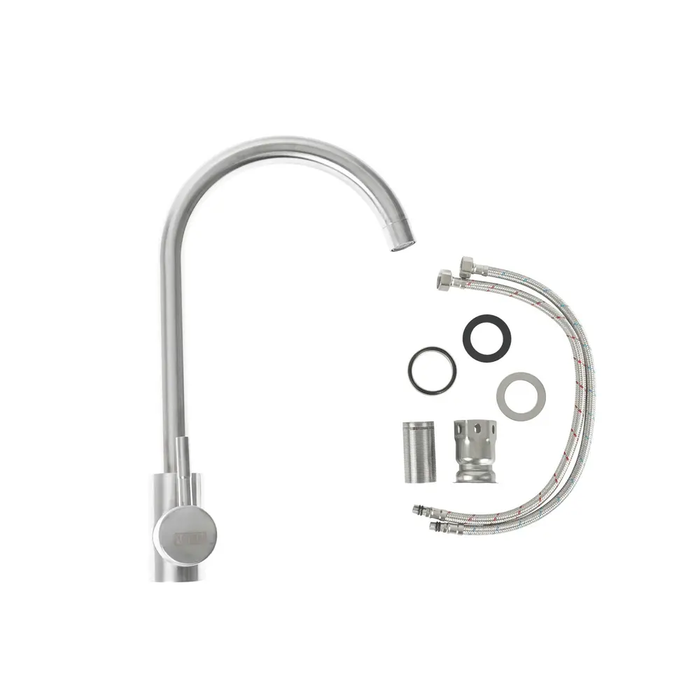 Змішувач для кухні Platinum NS01 виготовляється з нержавіючої сталі SUS 304, що забезпечує надійність та привабливий зовнішній вигляд. Гарантія на змішувач 12 місяців.