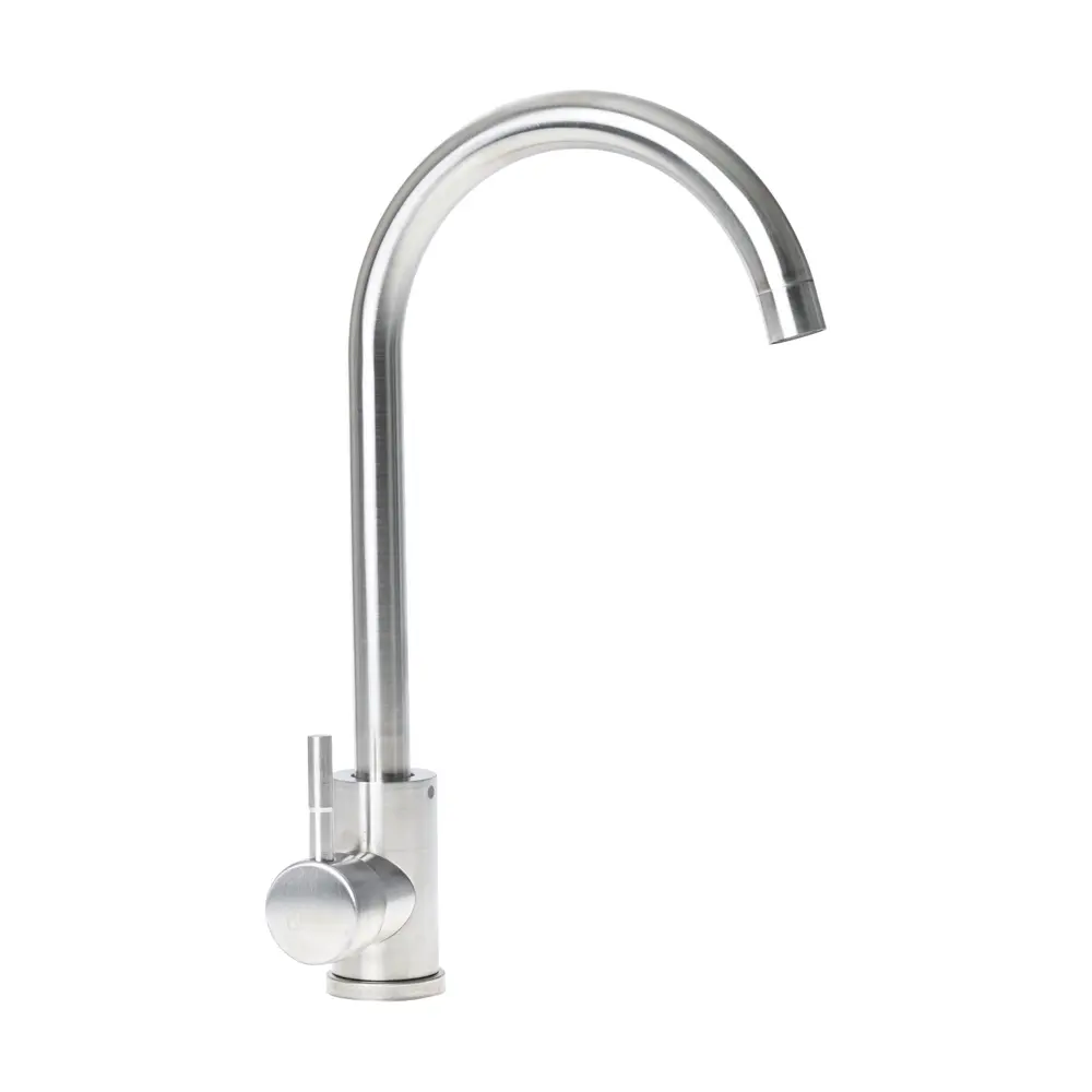 Кухонний змішувач Platinum NS01 добре поєднується з різними формами кухонних мийок. Він має поворотний округлий вилив, що полегшує миття посуду та мінімізує бризки від води.