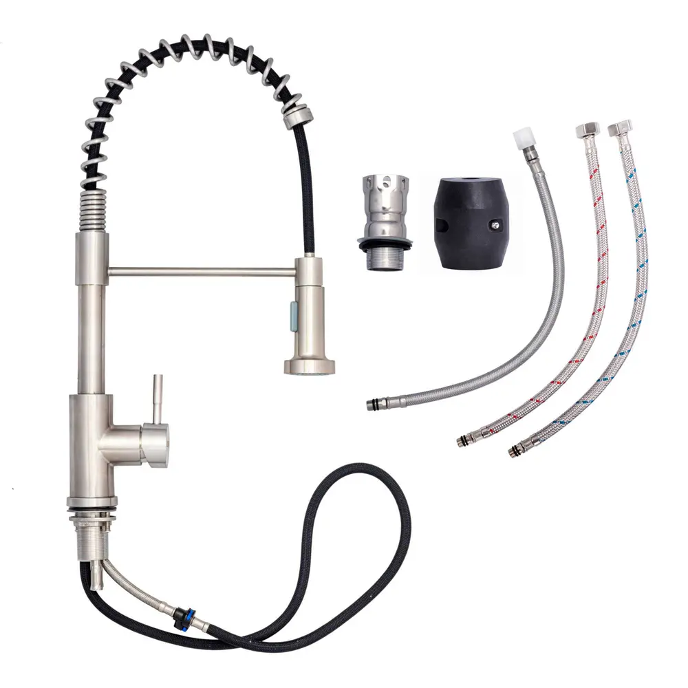 Кухонний змішувач з висувним виливом Platinum FR56 добре поєднується з сучасним дизайном кухонних мийок. Висувний поворотний вилив з пружиною полегшує миття посуду та забезпечує зручне користування в режимі лійки. Ідеально підходить для мийок з двома чашами.