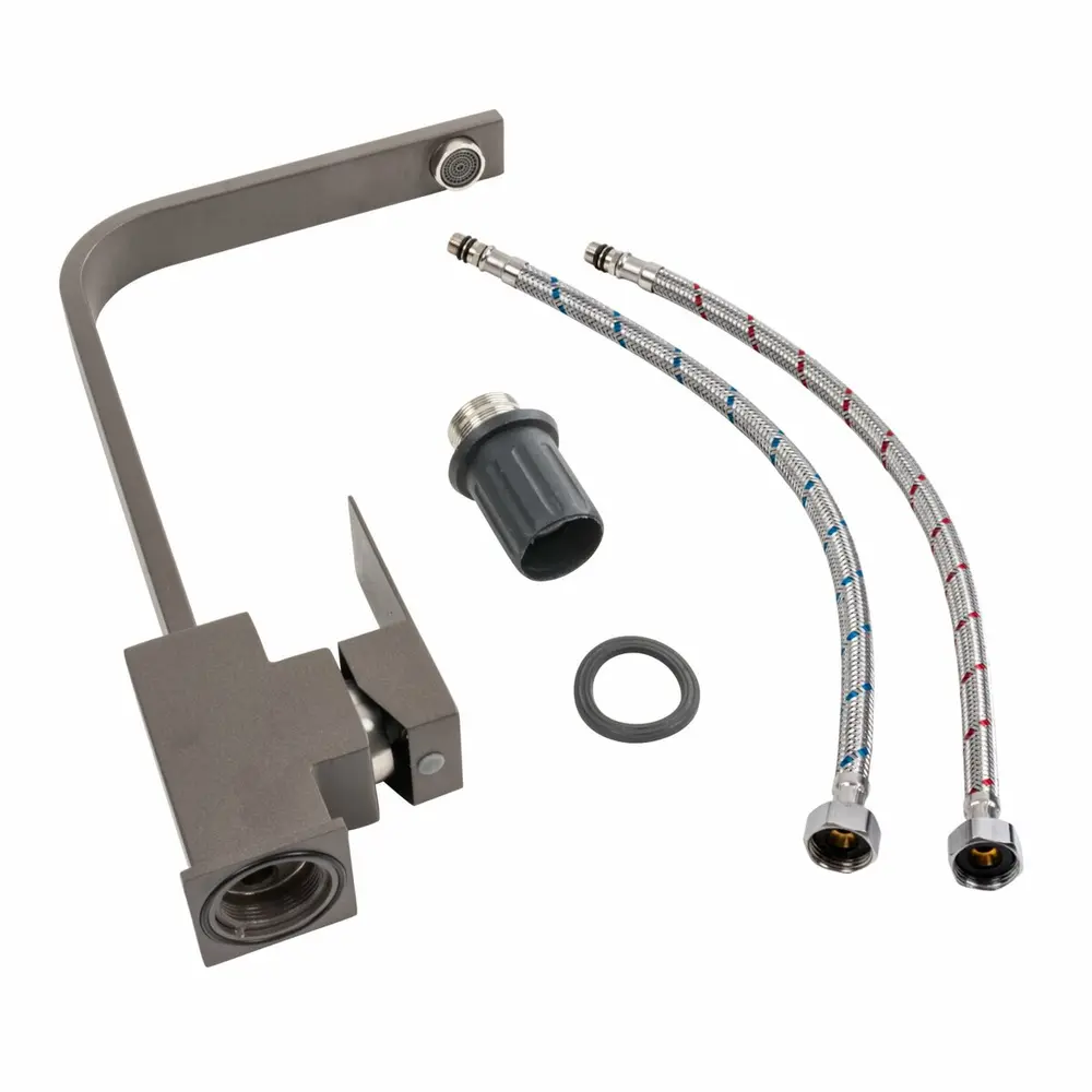 Підкресліть свій стиль та забезпечте вашій кухні найвищий стандарт зручності за допомогою кухонного змішувача Platinum 179 NES Темна скеля. Виготовлений із високоякісної нержавіючої сталі SUS 304, цей змішувач поєднує в собі надійність та елегантність.