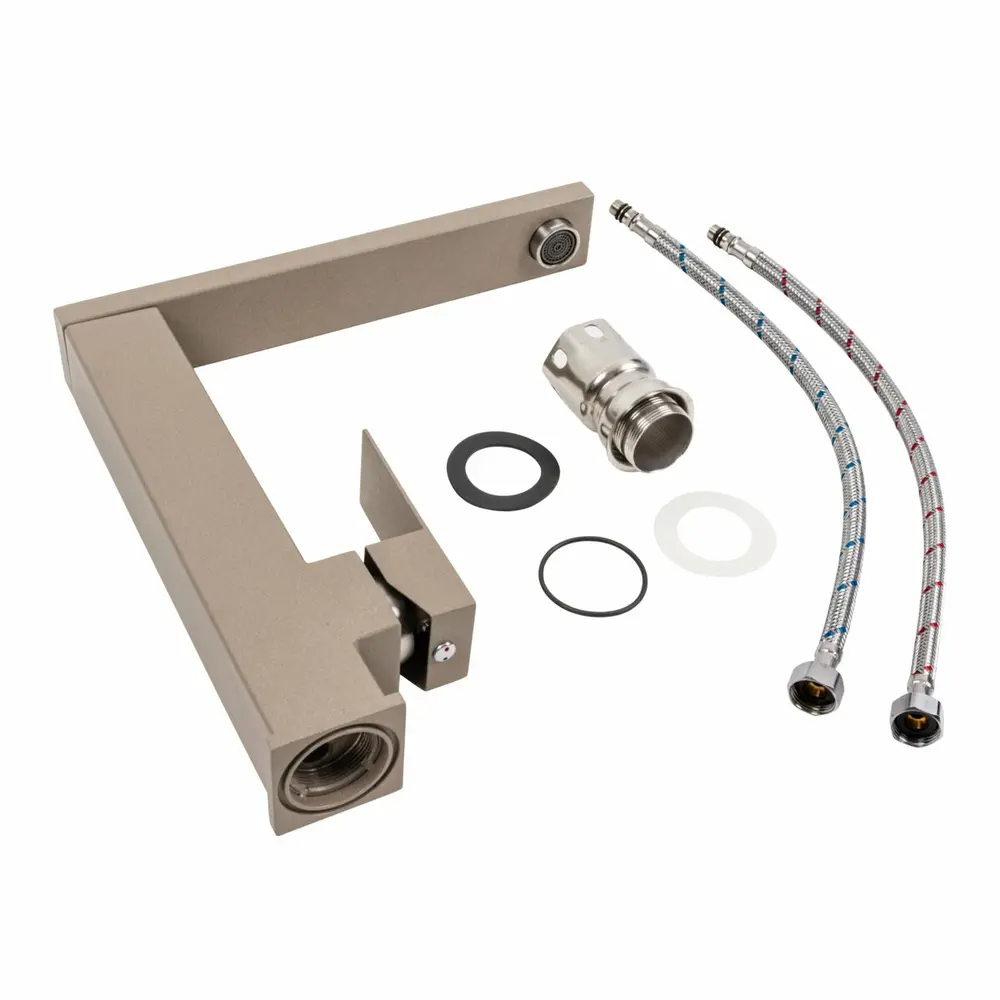 Два шланги довжиною 50 см дозволяють легко приєднати змішувач до водопроводу. Комплектація включає шланги, кріплення для змішувача, прокладку та гайки, що спрощує процес монтажу та забезпечує надійну фіксацію.