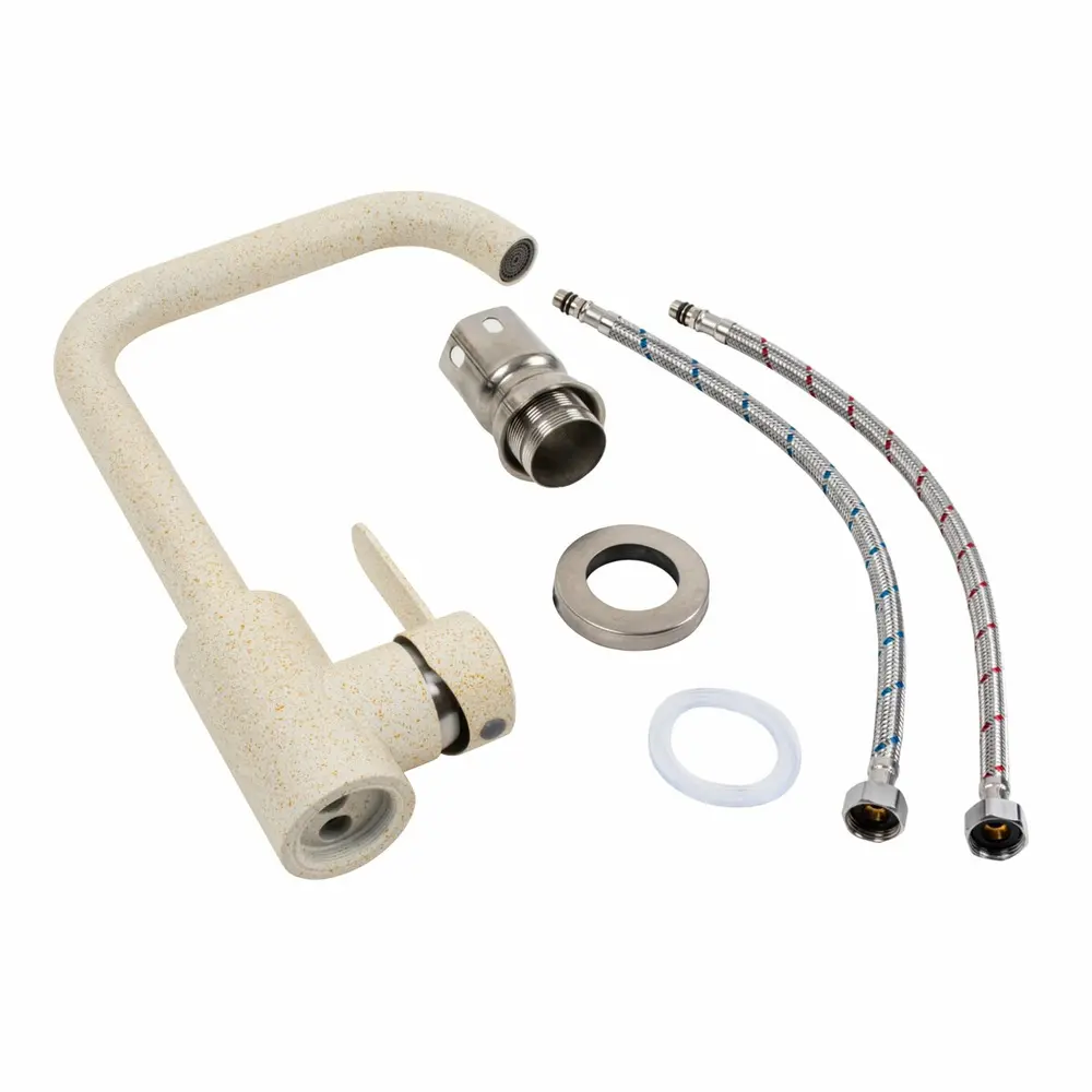 Змішувач кухонний Platinum KT 11 (3008B-FH) Пісок- це практичне та стильне обладнання для вашої кухні, яке поєднує в собі зручність, якість та елегантний дизайн. З цим змішувачем ви зможете ефективно та комфортно виконувати різноманітні завдання з водопостачання.