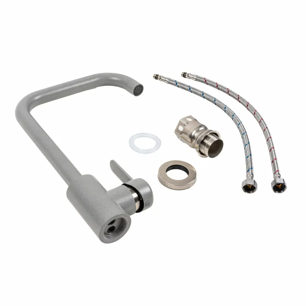 Змішувач кухонний Platinum KT 11 (3008B-FH) Сірий металік- це практичне та стильне обладнання для вашої кухні, яке поєднує в собі зручність, якість та елегантний дизайн. З цим змішувачем ви зможете ефективно та комфортно виконувати різноманітні завдання з водопостачання.