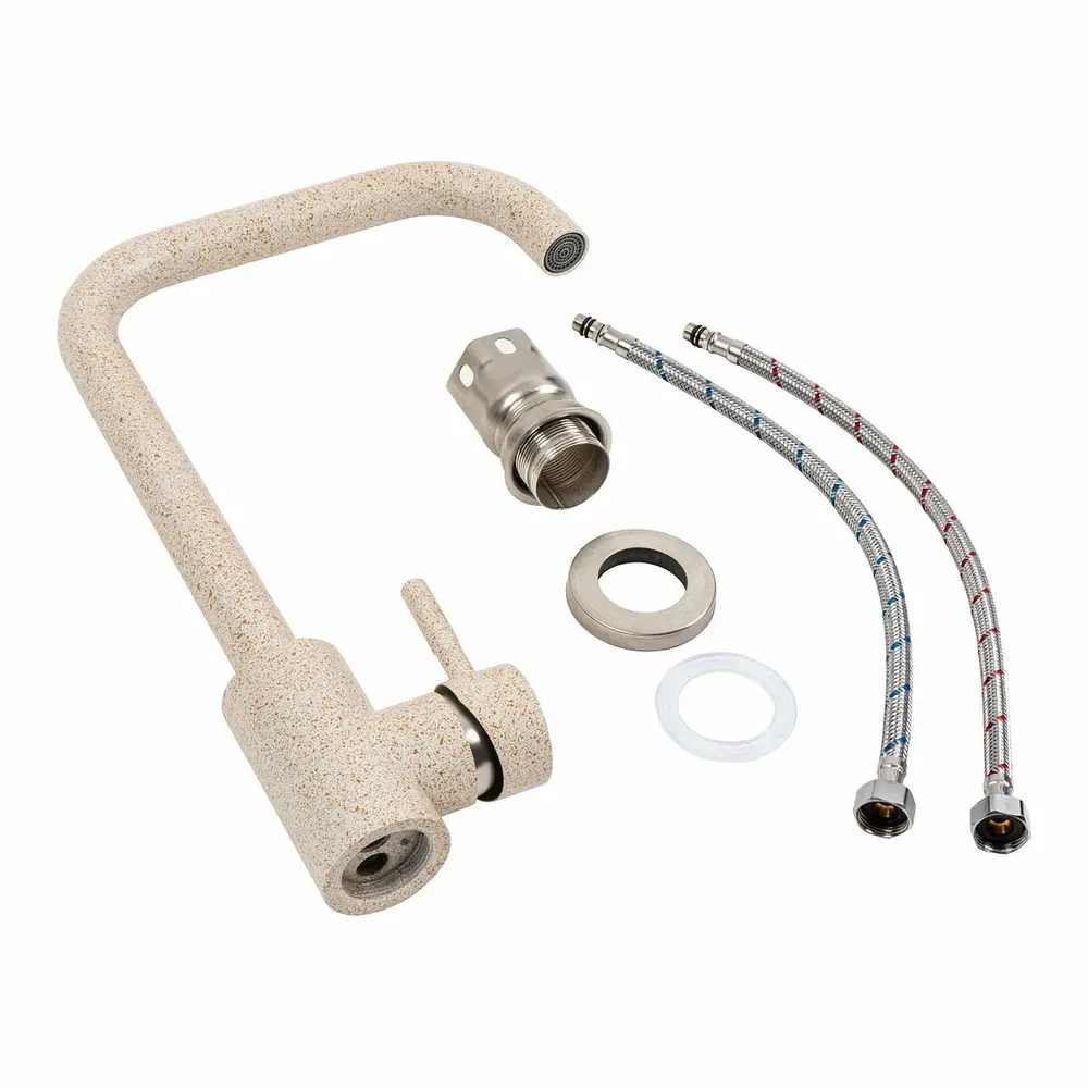 Виготовлений змішувач з високоякісної нержавіючої сталі SUS304, яка славиться своєю міцністю та стійкістю до корозії. Ця якісна матеріальна основа гарантує тривалу службу змішувача і його надійність. Колір змішувача- Сафарі.