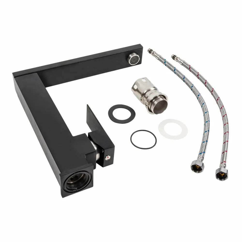 Два шланги довжиною 50 см дозволяють легко приєднати змішувач до водопроводу. Комплектація включає шланги, кріплення для змішувача, прокладку та гайки, що спрощує процес монтажу та забезпечує надійну фіксацію.