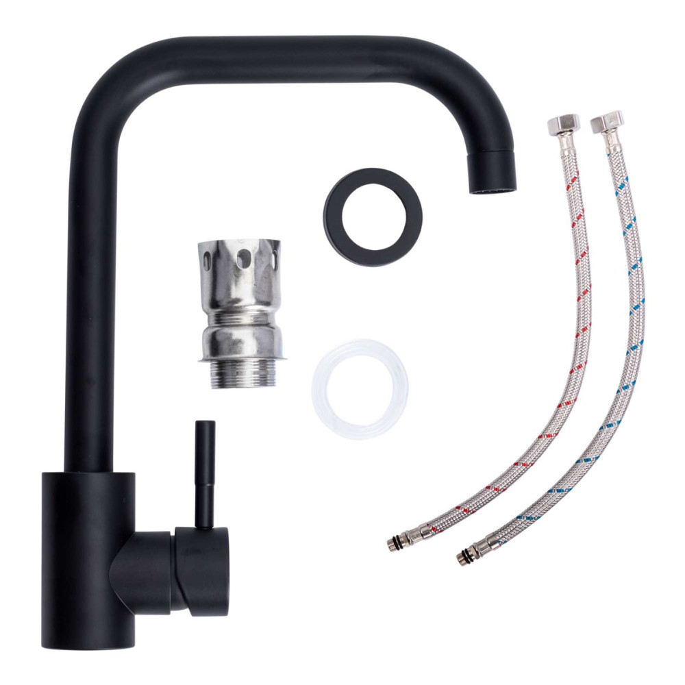 Довжина виливу змішувача складає 155 мм, що дозволяє легко керувати напрямком потоку води. У комплекті разом зі змішувачем йдуть два шланги завдовжки 50 см, які забезпечують надійне підключення до водопроводу. Крім цього, ви знайдете всі необхідні деталі для монтажу, включаючи кріплення, прокладку та гайки, що робить процес встановлення швидким і простим.