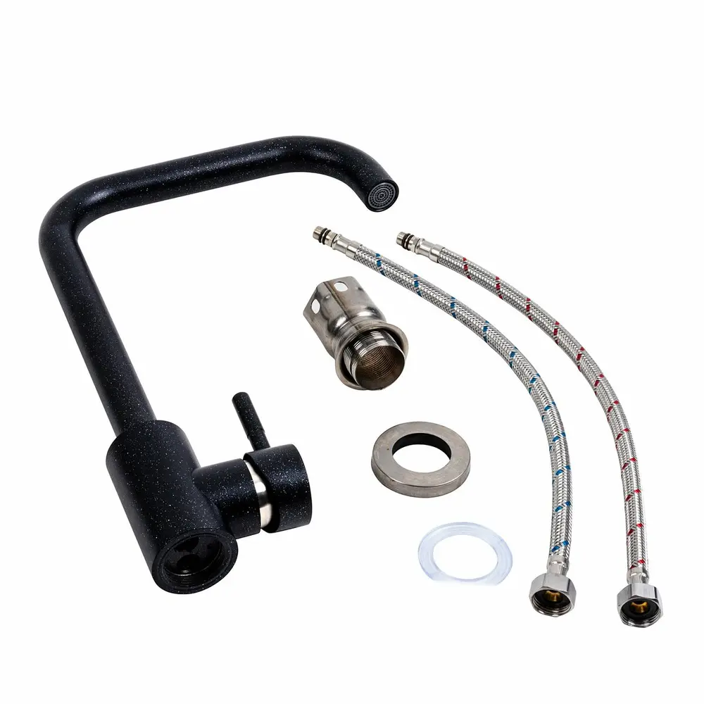 Змішувач кухонний VALESO NS02B (3008B-NA) чорний металік - це вишуканий та функціональний аксесуар для вашої кухні, призначений для забезпечення комфорту та ефективності під час готування та миття посуду. Ось більше інформації про цей змішувач: