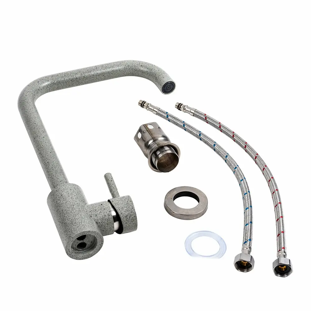 Змішувач кухонний VALESO NS02B (3008B-NA) сірий - це вишуканий та функціональний аксесуар для вашої кухні, призначений для забезпечення комфорту та ефективності під час готування та миття посуду. Ось більше інформації про цей змішувач: