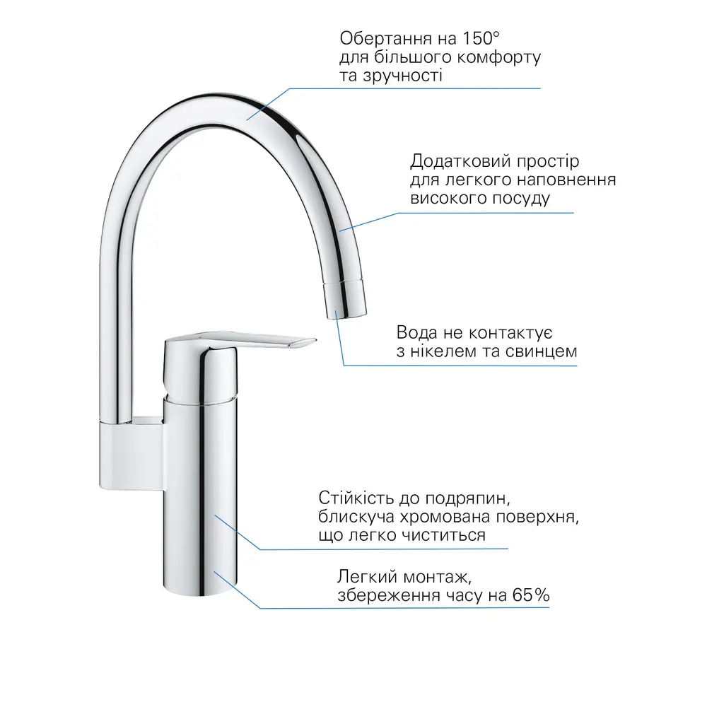 GROHE Zero Роздільні шляху подачі води - не містить нікелю і свинцю