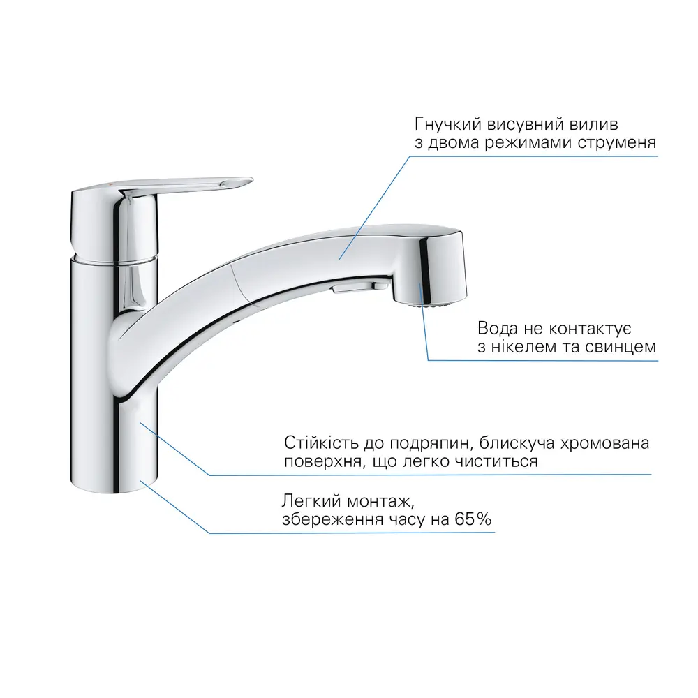 ізольовані внутрішні водні шляхи GROHE Zero - без свинцю і нікелю всередині змішувача