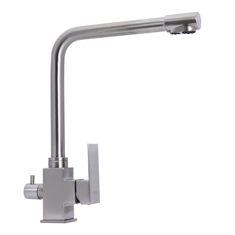 Кухонный смеситель Platinum KT 0066 благодаря двум рычагам позволяет переключиться на фильтрованную воду. Это обеспечивает безопасность и комфорт для всей семьи. KT 0066 хорошо сочетается с любым современным дизайном кухонных моек.