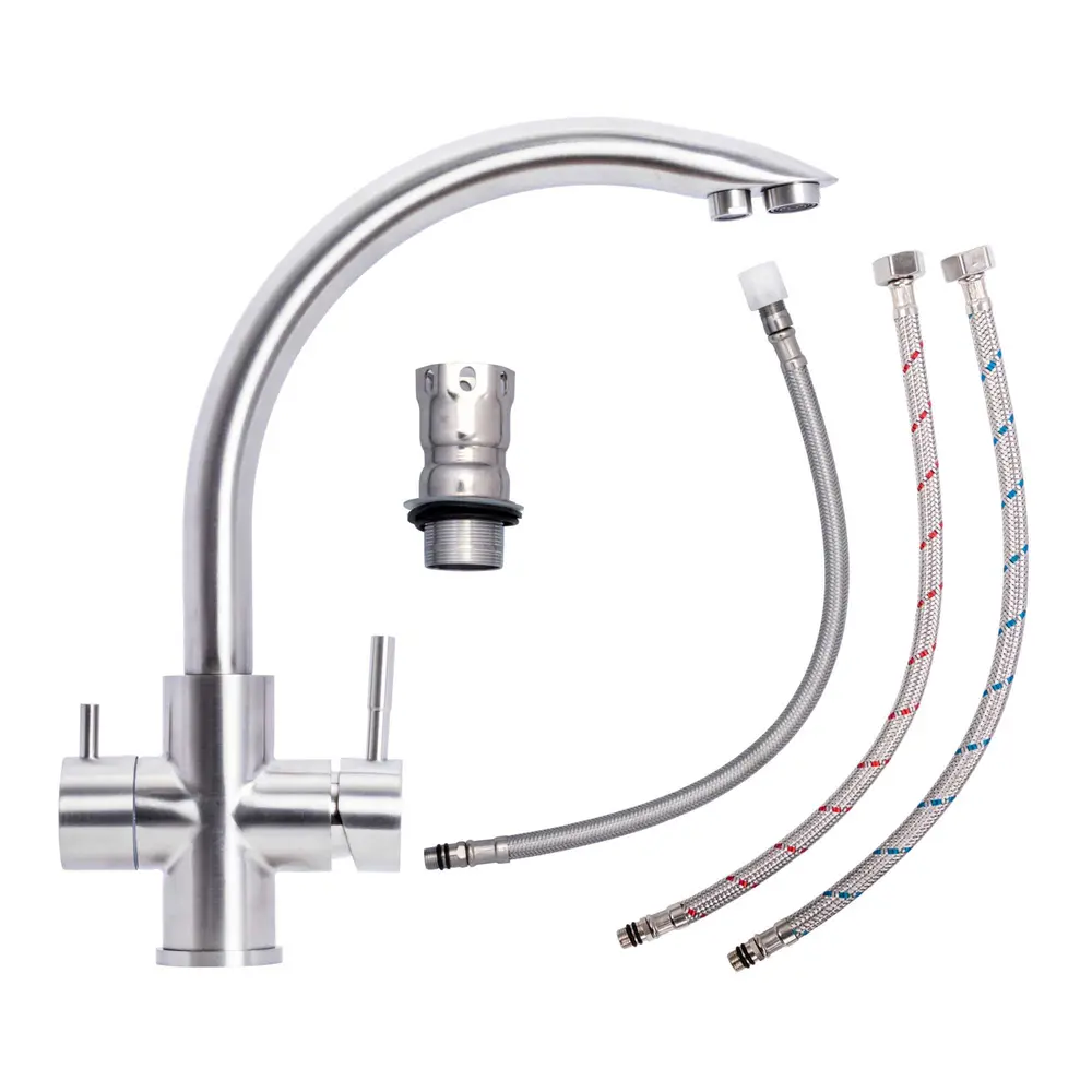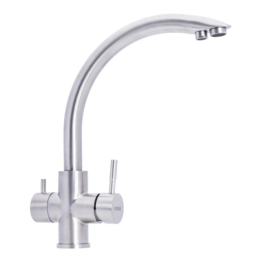 Смеситель для кухни Platinum производится из нержавеющей стали, что обеспечивает надежность и привлекательный внешний вид. Гарантия на смеситель 12 месяцев.