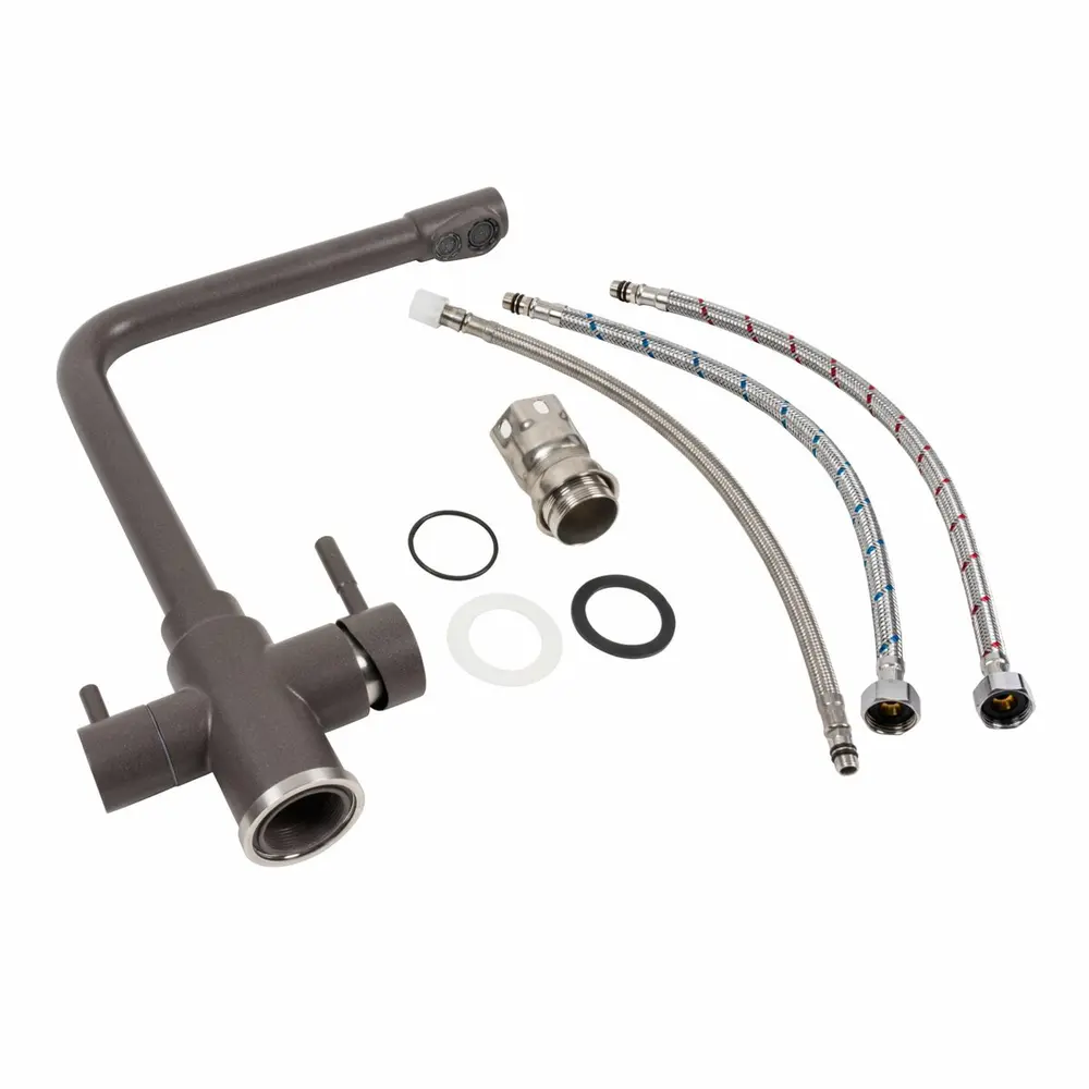 Завдяки двом важелям ви легко перемикнетеся на фільтровану воду, гарантуючи безпеку та комфорт для всієї вашої родини. Виготовлений з високоякісної нержавіючої сталі, KT 8201 вражає надійністю та привабливим зовнішнім виглядом.