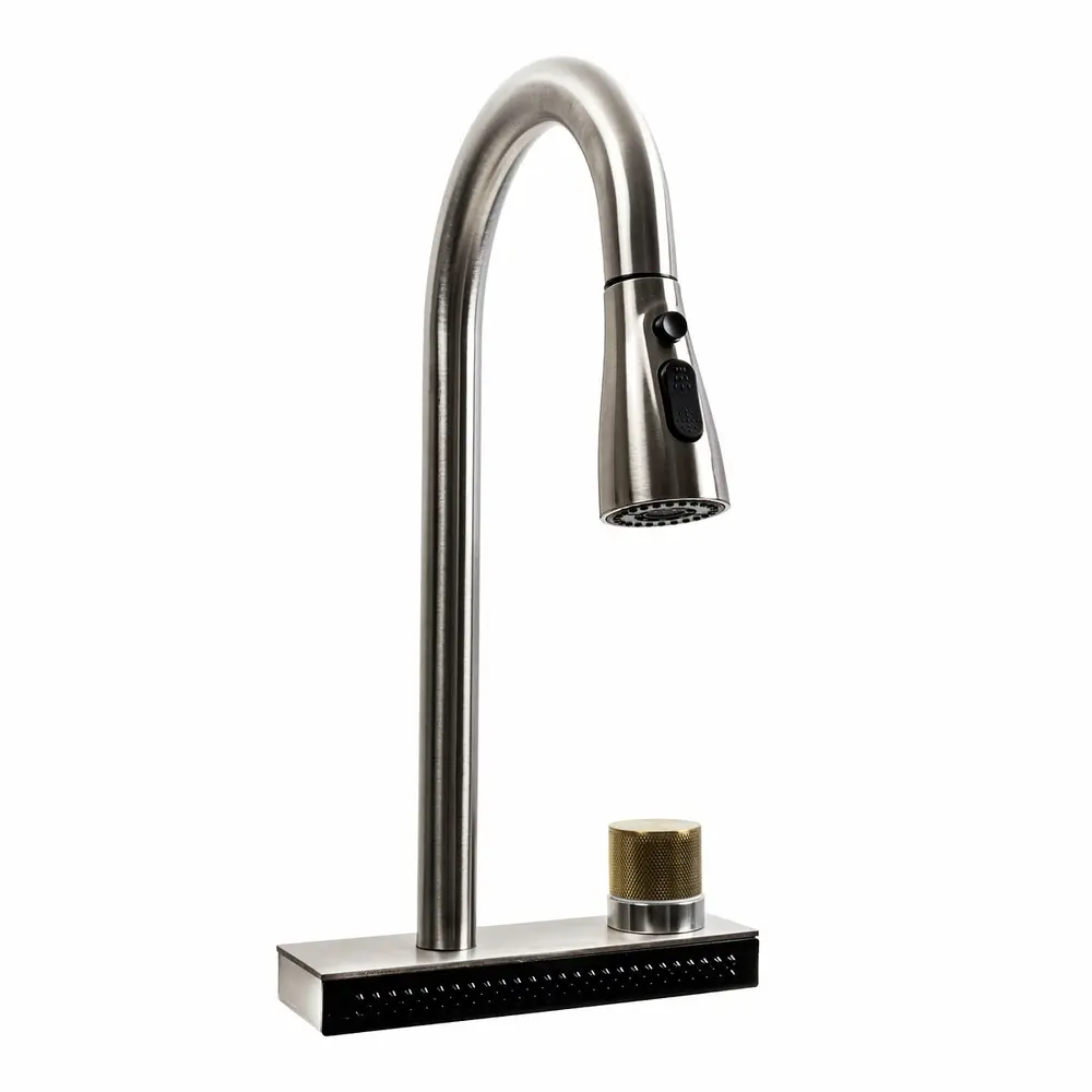 Перемикачі режимів зручно розташовані на аераторі, що дозволяє легко налаштовувати подачу води під ваші потреби. Особливістю цього змішувача є функція "Водоспад", яка додає розкіш та забезпечує ефективне миття від основи корпусу.