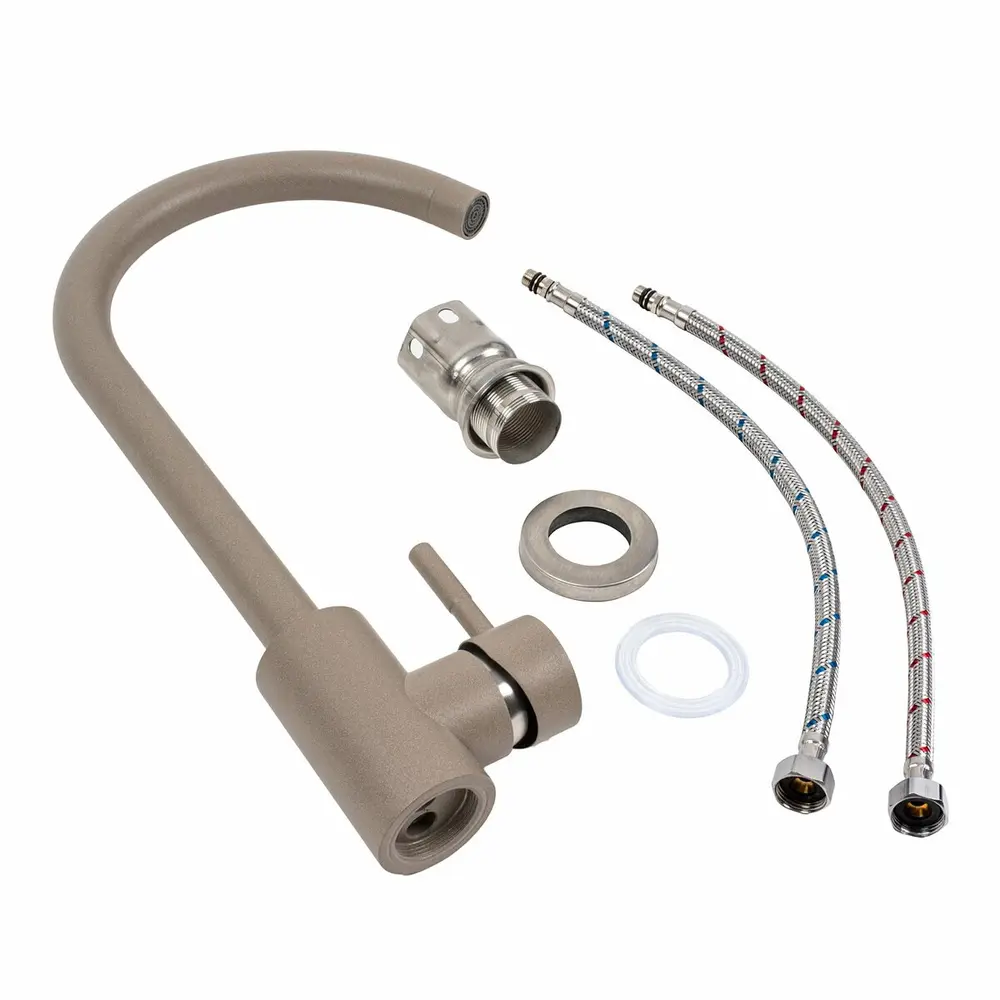 Змішувач кухонний Platinum 56 B NESP (3008 А)Титан відзначається сучасним та стильним дизайном. Він має колір Титан, який додає елегантності та оригінальності вашій кухні. Його висота складає 330 мм, що робить його ідеальним для використання з великими посудинами та каструлями. Довжина виливу становить 200 мм, що забезпечує зручність при наповненні горщиків та митті посуду. Змішувач виготовлений з високоякісної нержавіючої сталі SUS304, що гарантує його тривалий термін служби та стійкість до корозії.
