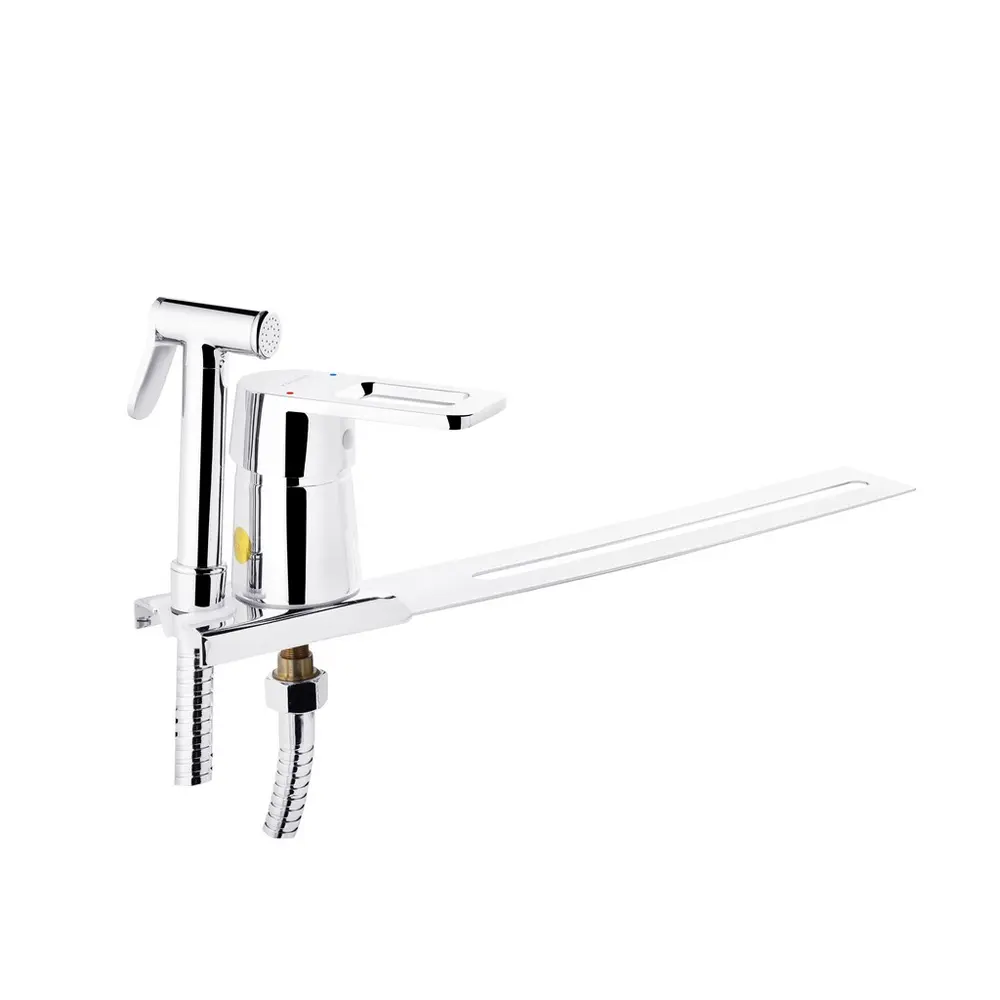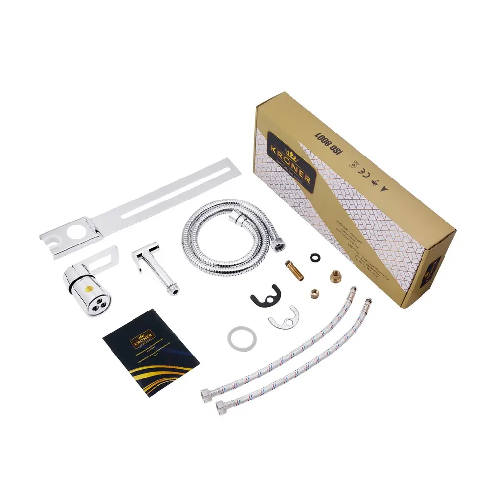 Змішувач, душовий шланг, лійка для гігієнічного душу, рейка, кріплення, інструкція.