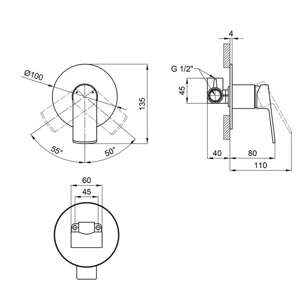 Змішувач прихованого монтажу для душу Qtap Kralovice 6029103C - це відмінне рішення для сучасної ванної кімнати. Він додасть оригінальність інтер‘єру ванної, а міцна хромована поверхня збереже зовнішній вигляд змішувача на довгі роки. Функціональна частина виготовлена з високоякісної латуні, стійкої до корозії. Управління потоком води здійснюється за допомогою зручного важеля. Встановлення змішувача здійснюється за допомогою кріплень, що входять в комплектацію.