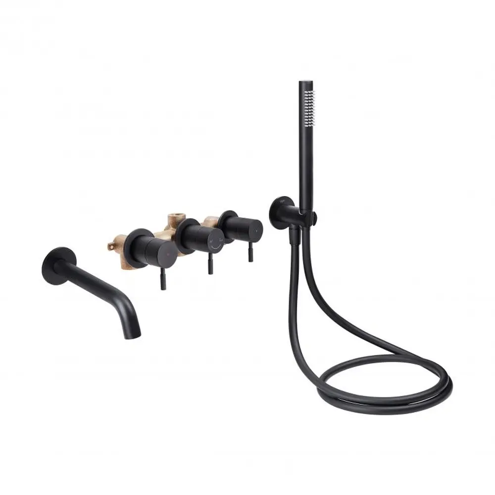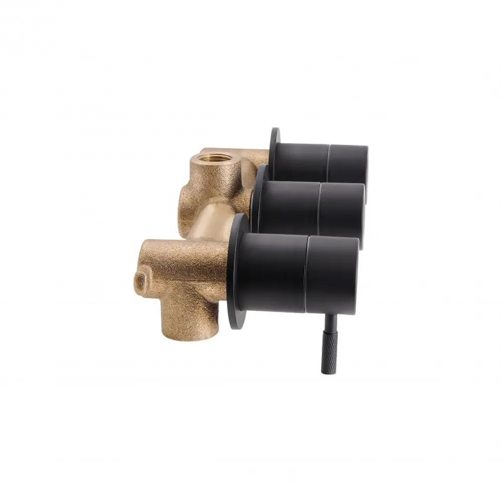 Змішувач прихованого монтажу для ванни Qtap Scorpio 3350105GB для двох споживачів виготовлений з міцної і зносостійкого латуні з рівномірним матовим покриттям чорного кольору, завдяки якому виріб має привабливий зовнішній вигляд і більш стійкий до механічних пошкоджень. Подача і регулювання температури води здійснюється за допомогою зручних важелів, а перемикання у душовий режим - поворотним дивертором. Завдяки такому змішувачу інтер‘єр ванної буде виглядати стильним і сучасним.