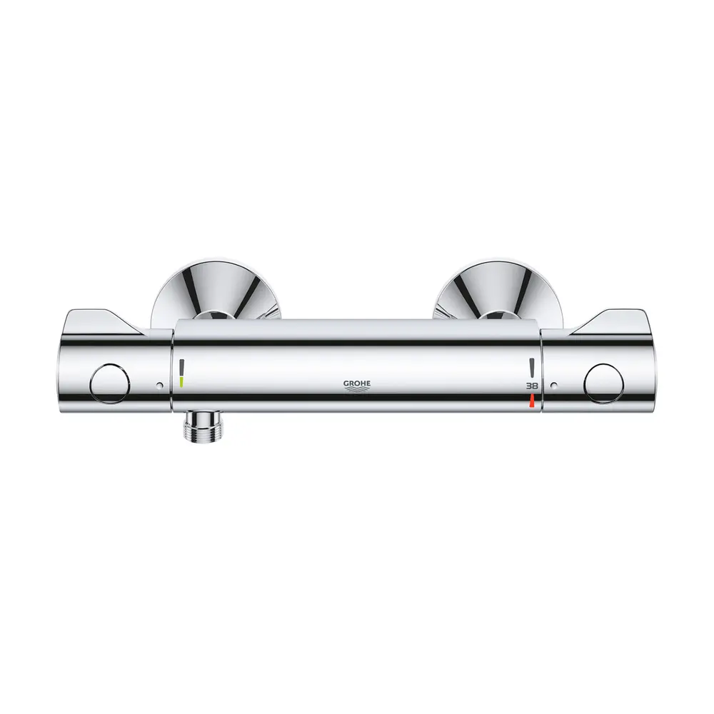 Термостатический смеситель для душа Grohe Grohtherm 800 34558000 изготовлен из высококачественной латуни и имеет хромированную глянцевую поверхность. Для включения подачи воды и регулировки температуры смеситель оснащен двумя вентилями, делающими процесс настройки температуры и напора воды простым и интуитивно понятным.