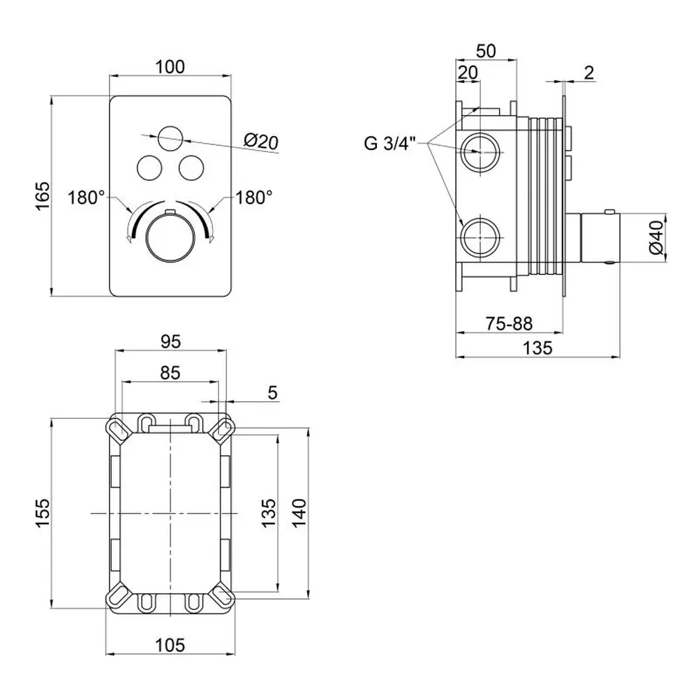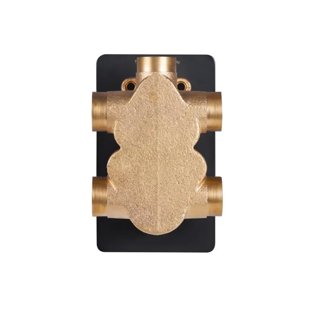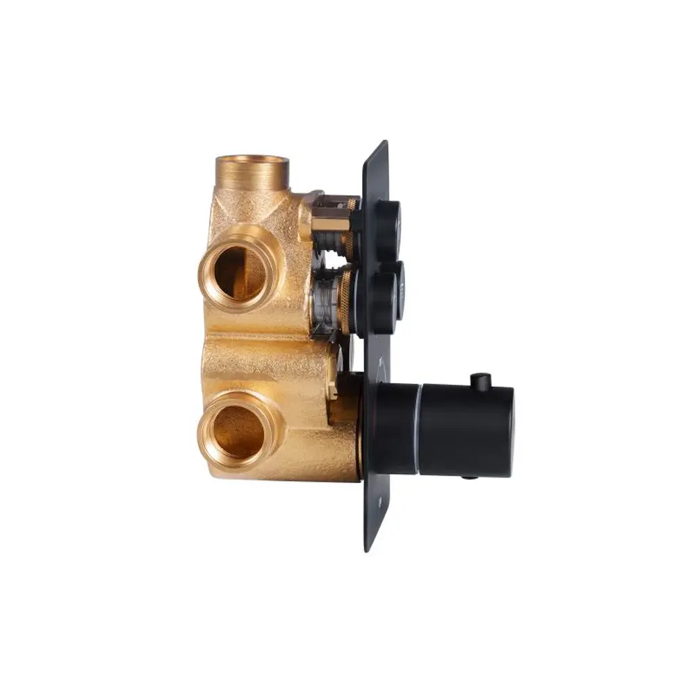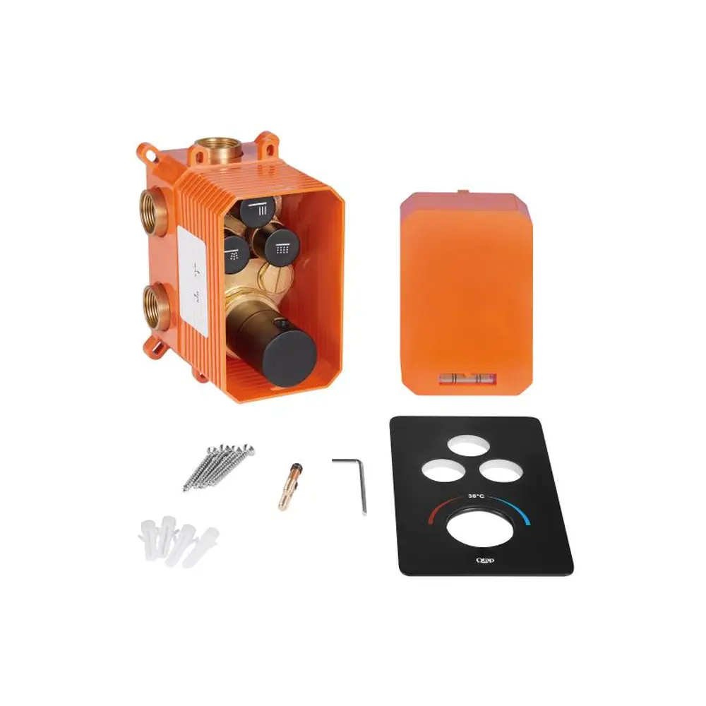 Змішувач термостатичний прихованого монтажу для душу Qtap Votice 6443T105NKB на трьох споживачів – це зручне рішення для сучасної ванної кімнати. Міцна матова чорна поверхня збереже зовнішній вигляд змішувача на довгі роки. Змішувач виготовлений з високоякісної латуні, яка не схильна до корозії. Завдяки вбудованому термостату встановлена температура води буде постійно підтримуватися, що зробить гігієнічні процедури ще більш комфортними.