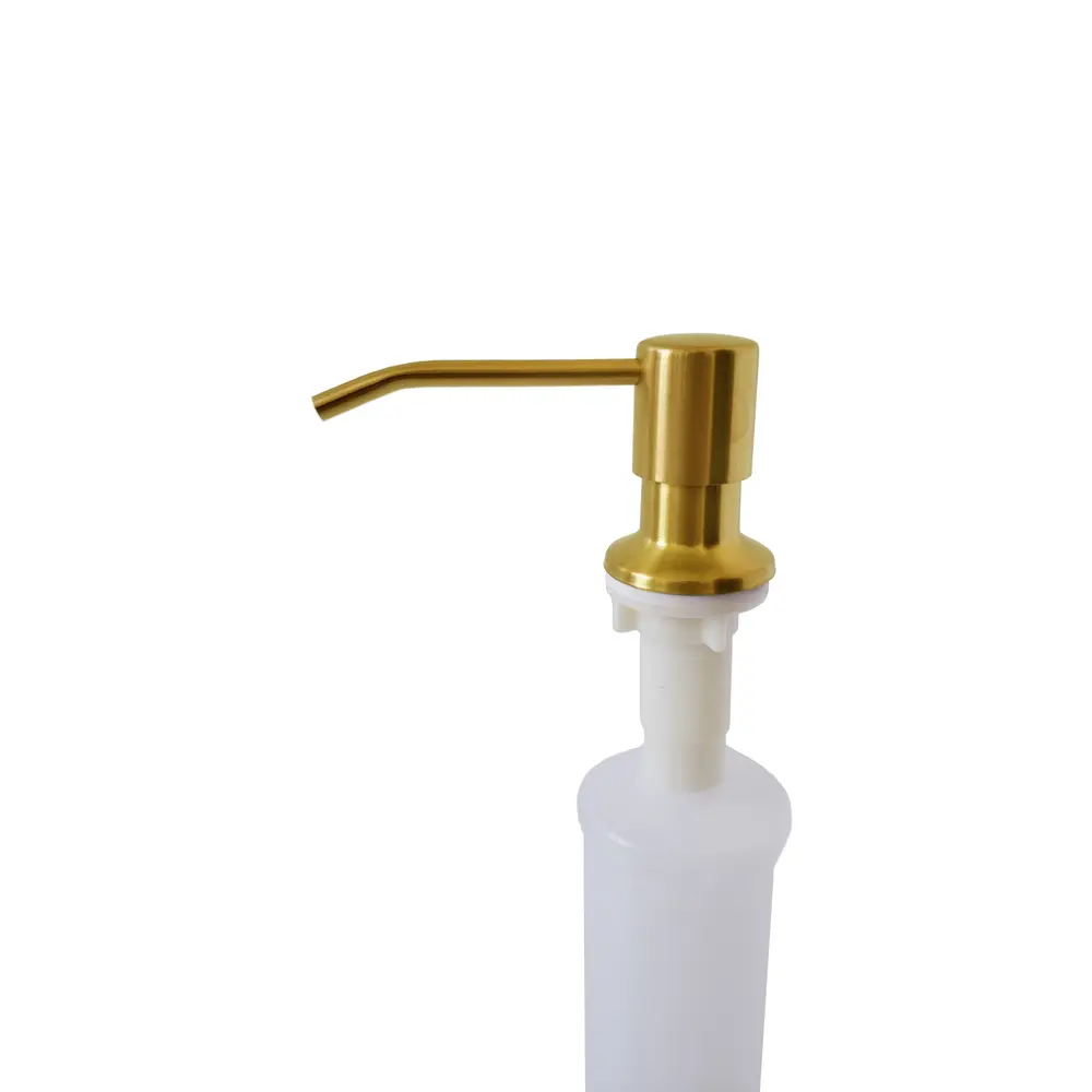 Дозатор для миючого засобу Nett встановлюється на мийку для кухні або на стільницю, діаметр отвору 30мм, і дозволяє звільнити простір поруч з мийкою від ємностей з миючими засобами. Головка дозатора виконана з нержавіючої сталі 304 марки з золотим покриттям.