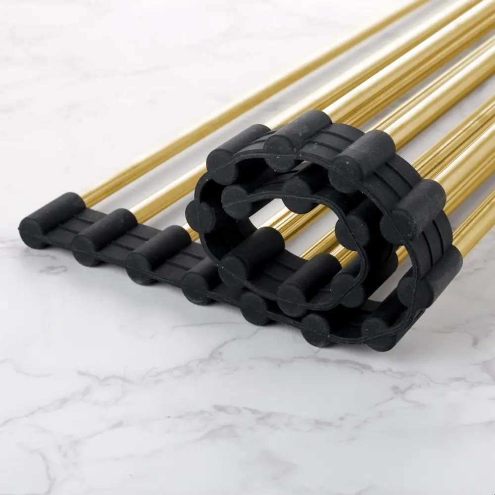 Сушка виготовлена з високоякісної нержавіючої сталі з силіконовими бортиками, яка допоможе вам легко і просто сушити посуд, фрукти, овочі і так само створить безпечну поверхню для зливу після миття.