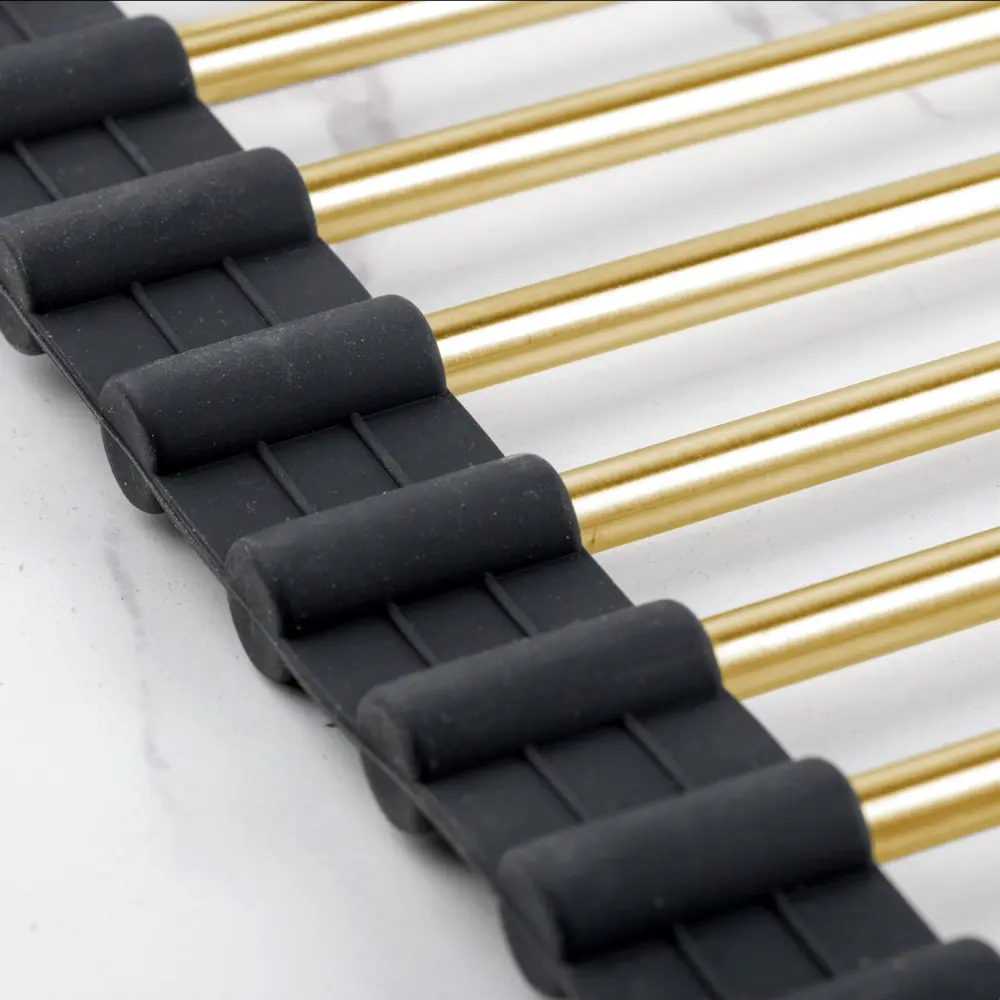 Міцна конструкція металевих прутів дозволить вам ставити на її поверхню важкий посуд, без подальшої її деформації.Так само товстий шар силіконового покриття захистить вашу мийку від зайвих подряпин посудом, запобіжить корозії металевих прутів.
